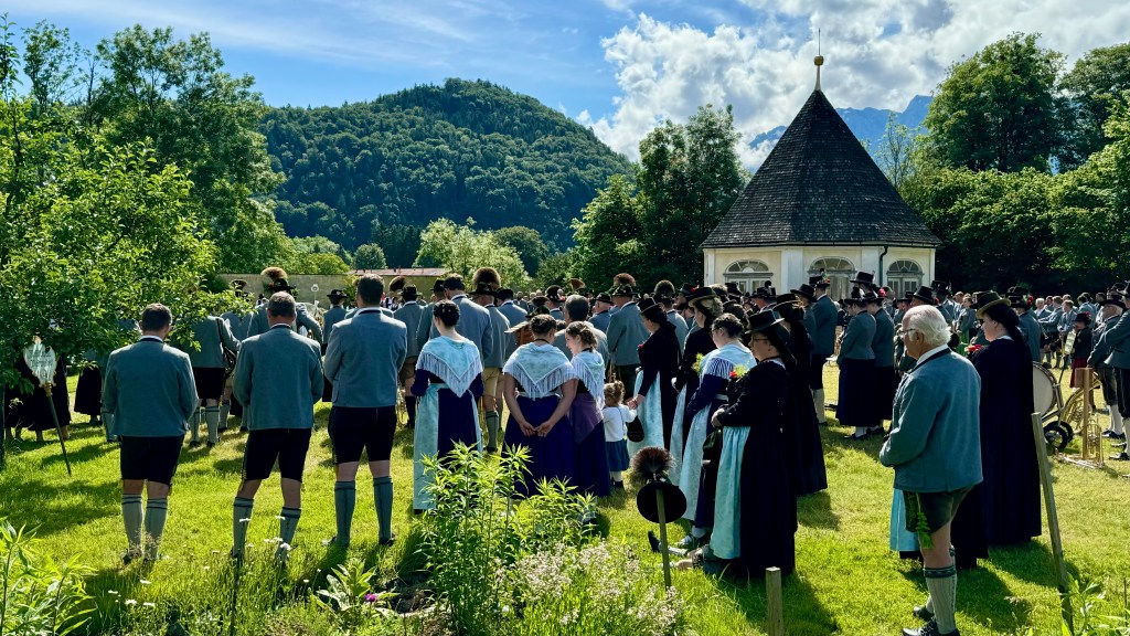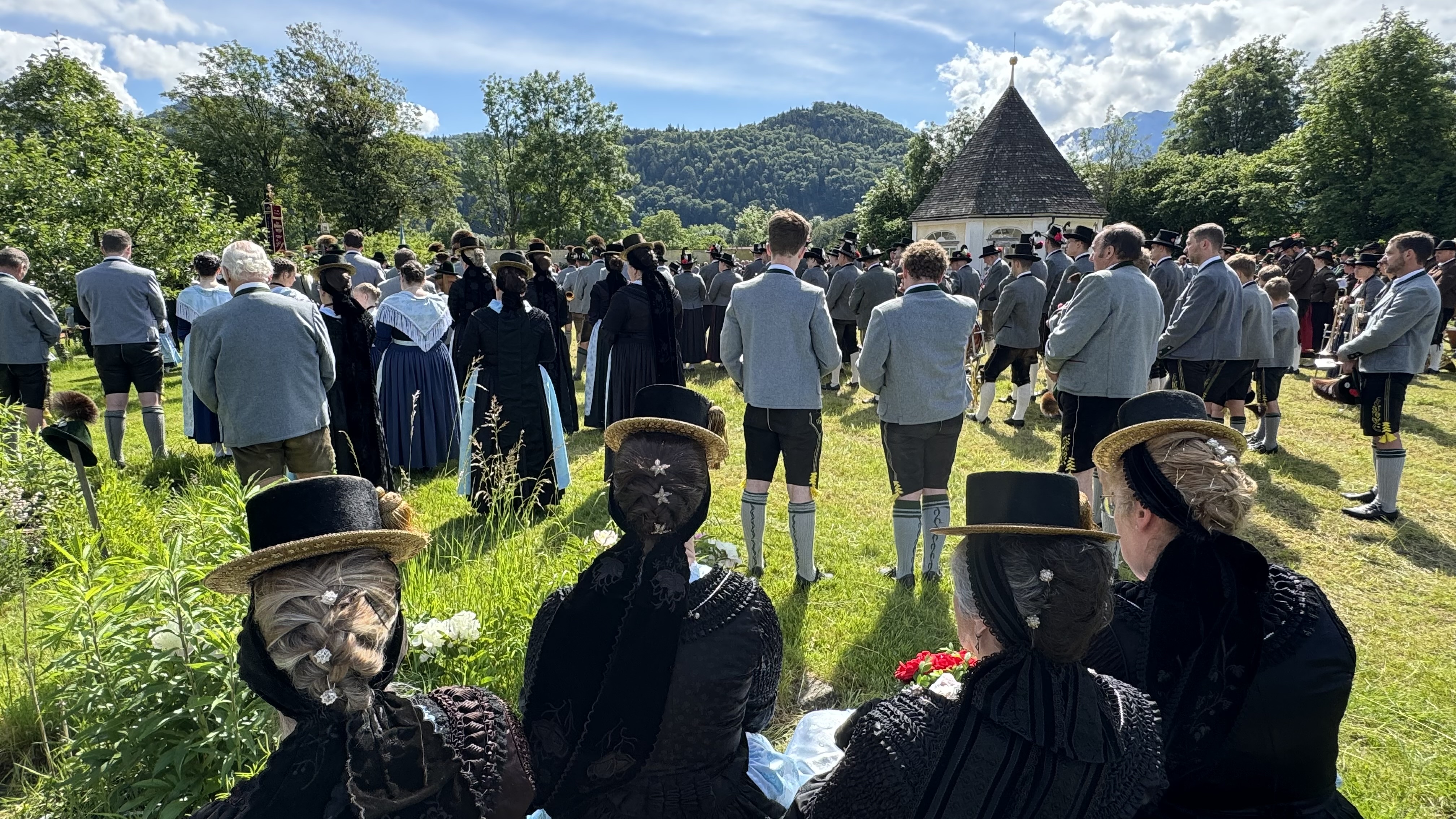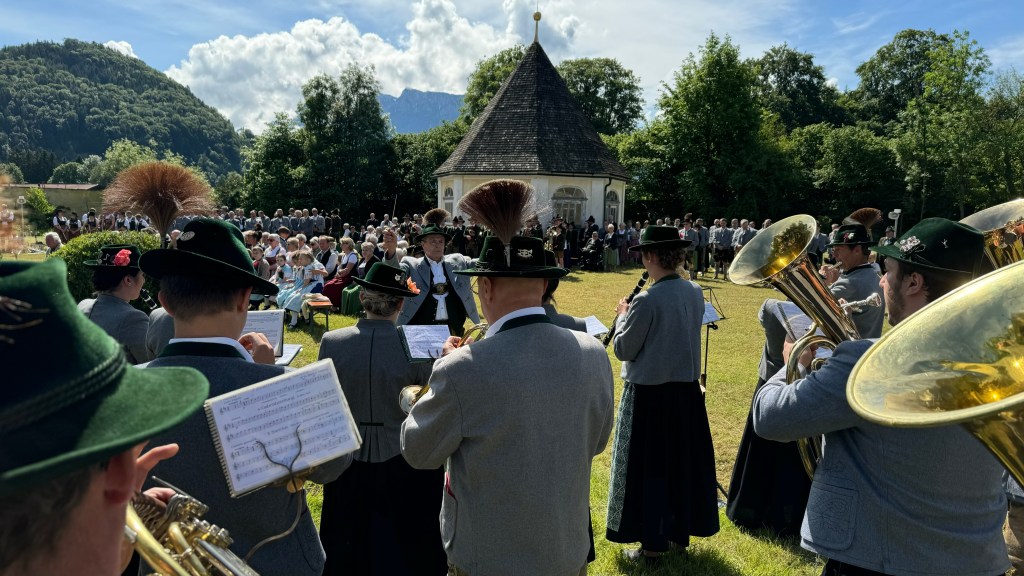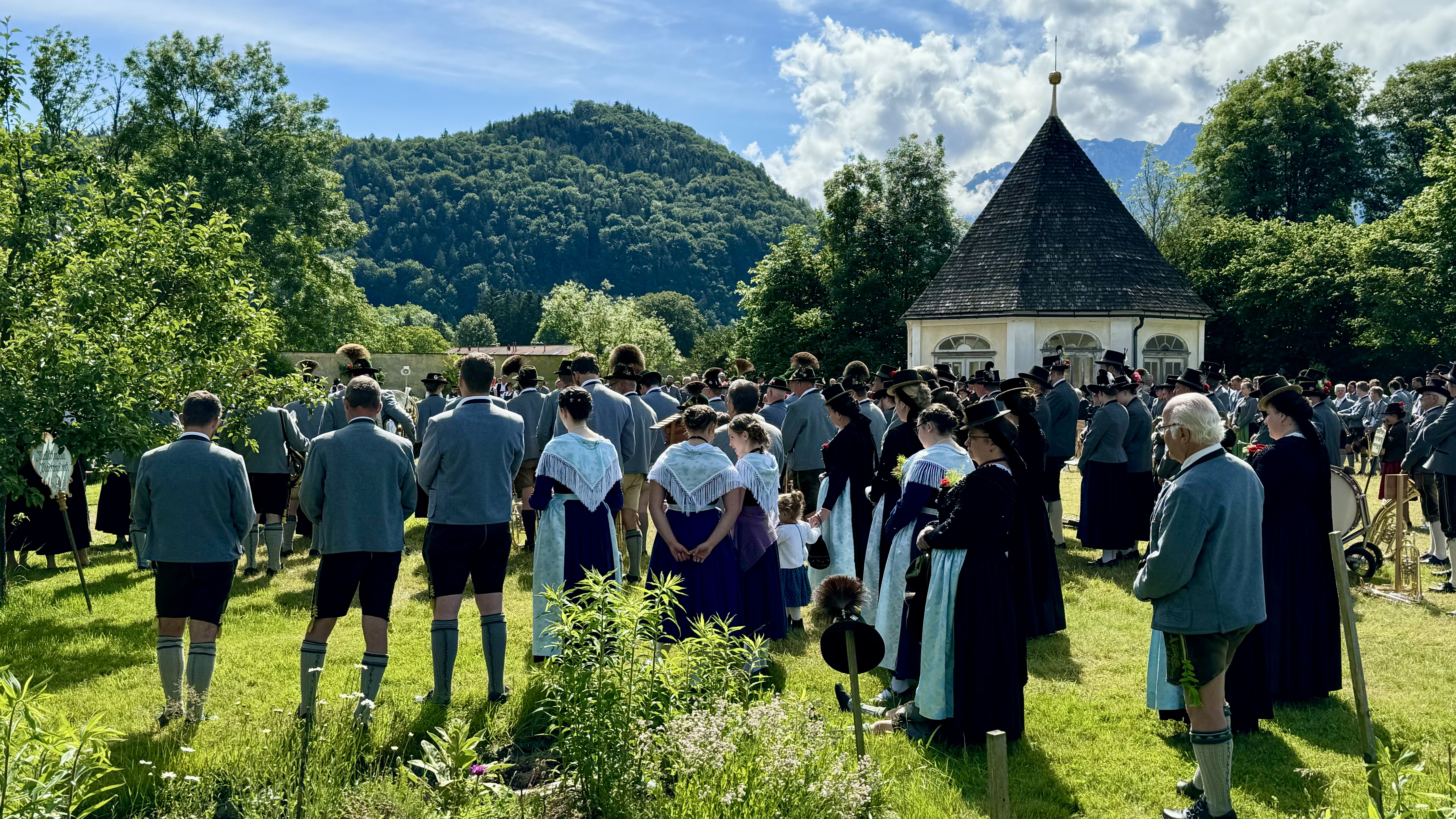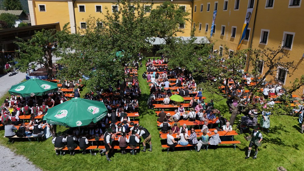 Beeindruckend war nach dem Festgottesdienst der überwältigende Gemeinschaftschor aller neun Kapellen die gemeinsam mit der Bayernhymne und dem Kaiserjägermarsch den Klostergarten in ein gigantisches Klangmeer verwandelten. Diese grandiose Darbietung zeugte von der hohen musikalischen Qualität und dem Zusammenhalt der Blasmusikgemeinschaft in der Region. Das begeisterte Publikum honorierte dieses seltene Zusammenspiel von Musikkapellen mit einem außerordentlichen Applaus.
